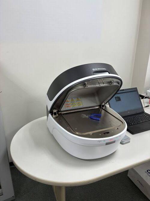 当社では、島津製作所製のエネルギー分散型蛍光X線分析装置(EDX)を導入しています。この装置は、試料にX線を照射し、発生する特性X線を検出することで、サンプルに含まれる元素の種類(定性)と含有量(定量)を測定します。