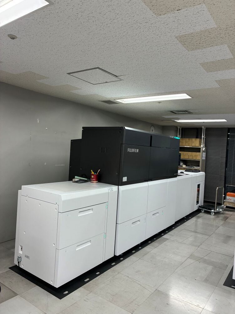 当社では、富士フイルムビジネスイノベーション社製フラッグシップモデル「Revoria Press PC1120」を3台導入しています。A4ヨコ毎分120ページという高速プリントエンジンを搭載し、数千部から万単位の大量印刷案件にもスピーディーに対応可能です 。さらに3台同時稼働で圧倒的な処理能力を実現できます。